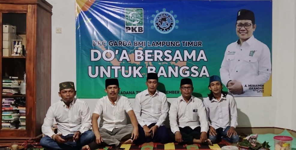 Sukadana, Lampung Timur – Ketua DPC Garda Buruh migran Indonesia Lampung Timur menggelar doa bersama untuk bangsa, instruksi langsung dari ketua DPC PKB Lampung Timur Ibu haji Ela Siti Nuryamah kepada seluruh kader PKB dan banom untuk menggelar doa kelamatan bangsa secara bersama-sama, Rabu malam 03/09/2025.