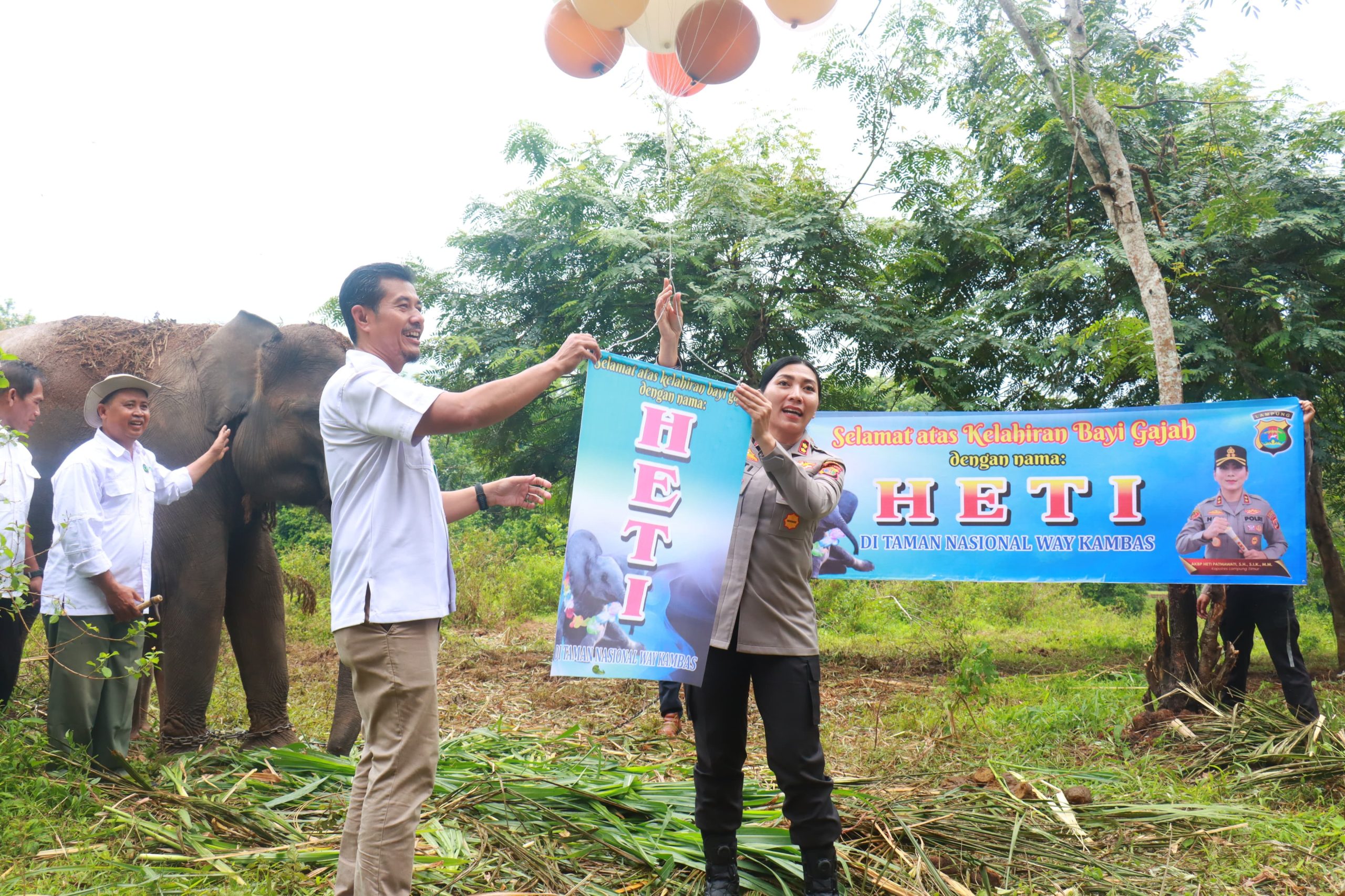 Digelar di Rumah Sakit Gajah Rubini Way Kambas, Kapolres Lamtim meresmikan nama dari anak pertama induk berusia 12 Tahun tersebut.Yang pertama saya sampaikan terimakasih kepada Kepala Balai TNWK atas kesempatan ini. Anak gajah ini resmi diberi nama Heti yang tentunya saya merasa bangga atas hal ini, yang dimana nama Heti tentunya diambil dari nama saya sebagai Kapolres Lamtim,” ucap Kapolres.