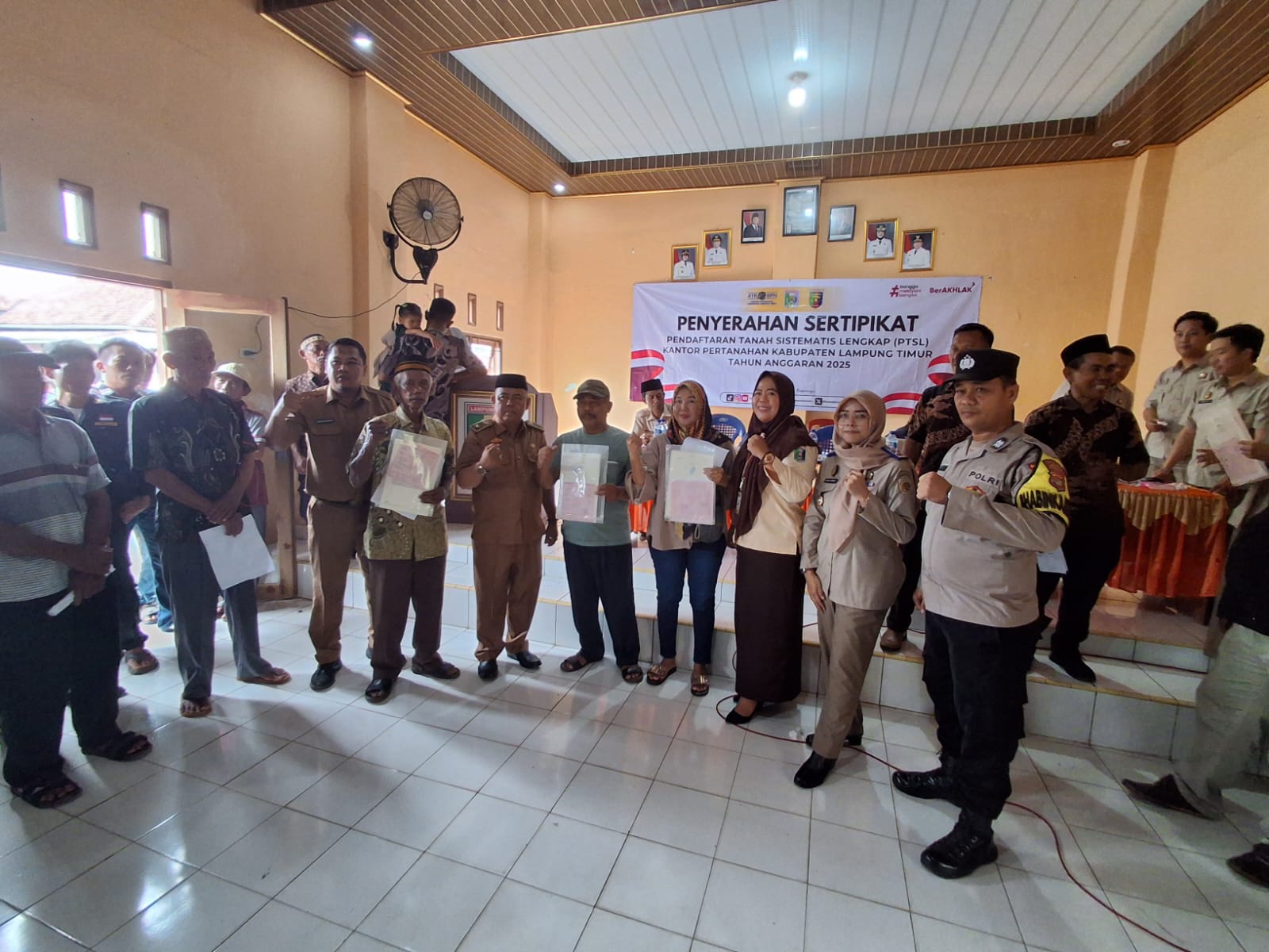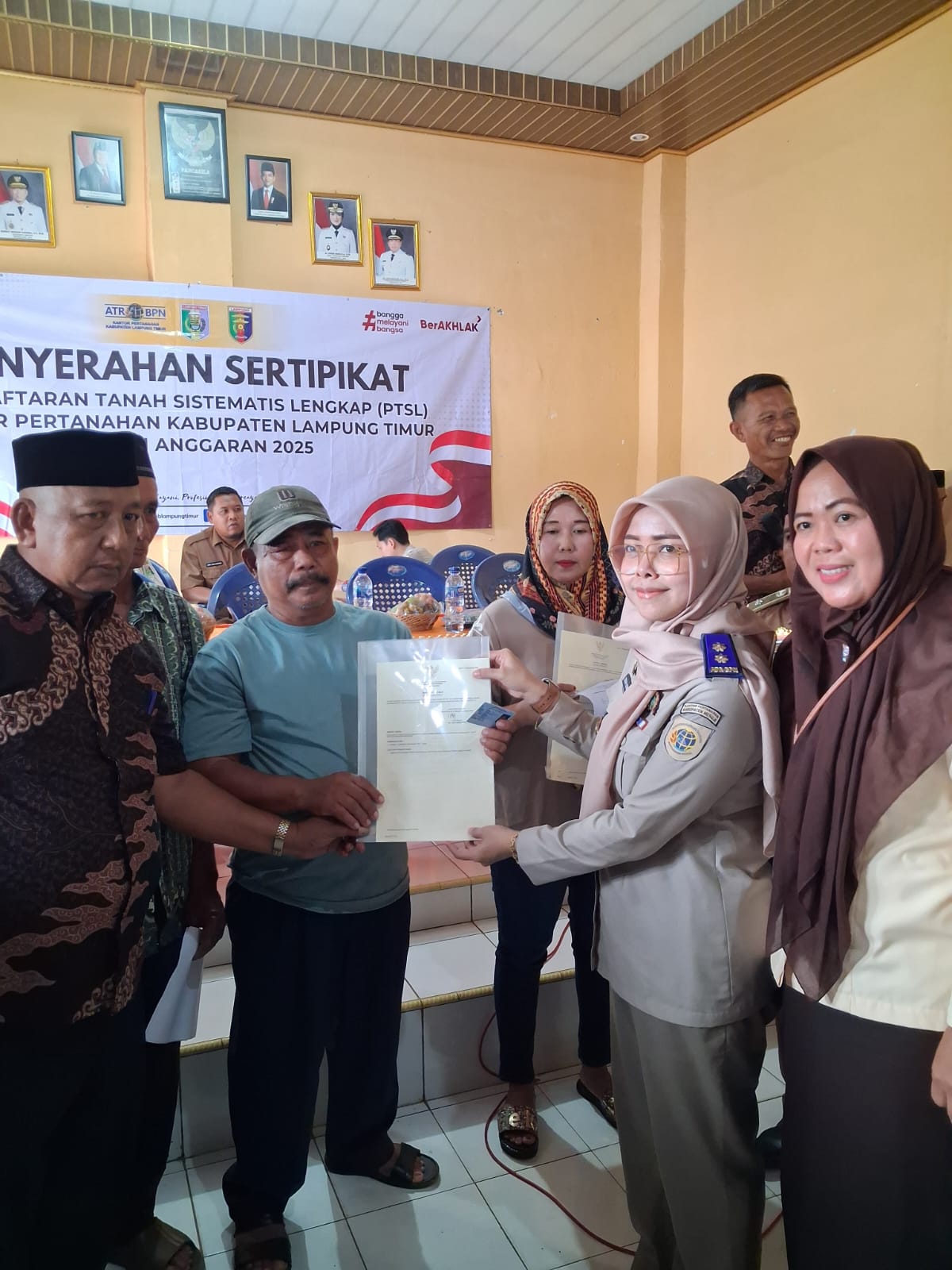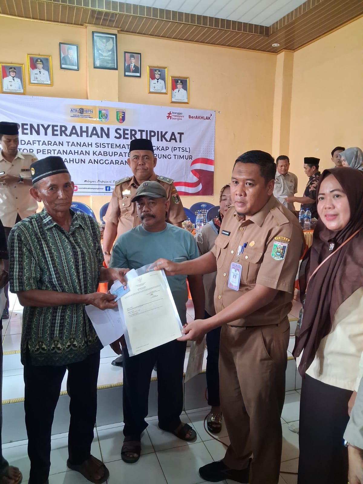 Hadir dalam kegiatan tersebut jajaran pegawai BPN dan Bapenda Lampung Timur, perwakilan Forkopimcam, serta masyarakat penerima sertipikat.