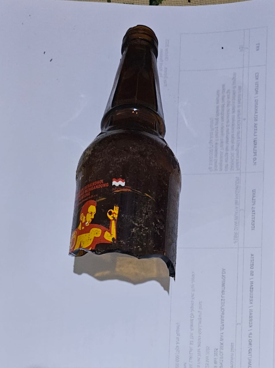 Polsek Way Jepara yang menerima laporan kejadian tersebut langsung menuju ke TKP dan mengamankan pelaku. Polsek Way Jepara langsung melakukan penangkapan pelaku dan penyitaan barang bukti berupa 1 buah botol bekas miras merk Vigour kondisi pecah separuh bagian.