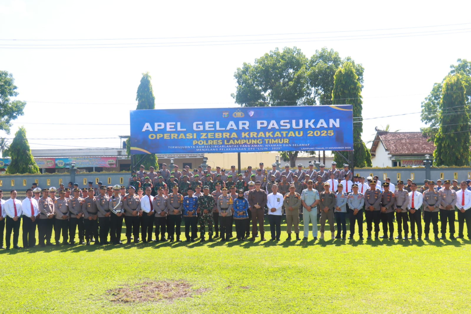 LAMPUNG TIMUR – Polres Lampung Timur sukses menggelar Apel Gelar Pasukan dalam rangka Operasi Patuh Krakatau 2025. Kegiatan digelar di Lapangan Satya Haprabu Mapolres Lampung Timur dan dipimpin langsung oleh Kapolres Lampung Timur, AKBP Heti Patmawati.